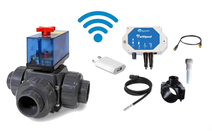 Bij onze wifi kranen hoort een wifi module met temperatuurmeting. Via de GSM, wordt de kraan gestuurd net zoals hierboven beschreven. Een wifi kraan kan je via de telefoon ook "handmatig" open of dicht zetten, of zelf een niveauregeling voor een overloopzwembad maken.