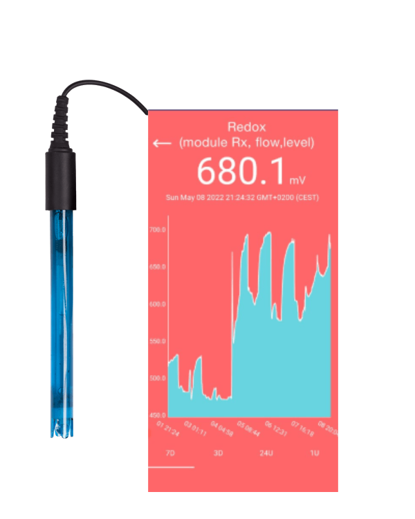 Chloor wordt gemeten met een Redox-sonde voor zoutelektrolyse . Over het algemeen komt een Redox van 700mV overeen met 1 ppm chloor. De redox sensor, is bedekt met een beschermend laagje goud